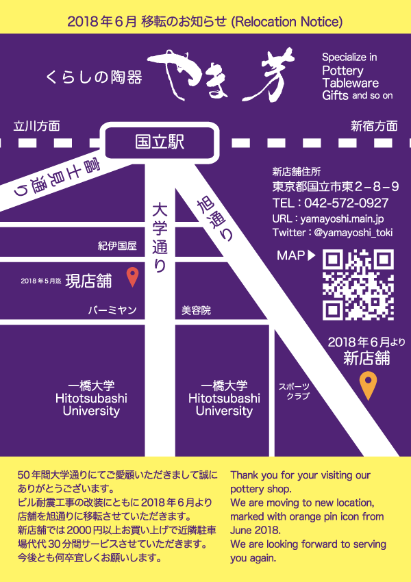 We are here in Kunitachi and dealing daily use Japanese style china and ceramics for 40 years.